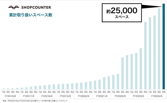 当社は、「意志ある人と、自由をつくる。」をビジョンに、また「すべての商業不動産をデジタル化し、商いの新たなインフラをつくる。」を実現すべきミッションとして掲げ、ポップアップストアの出店支援プラットフォーム「SHOPCOUNTER」のほか、商業施設のオンラインリーシング支援SaaS「SHOPCOUNTER Enterprise」を提供してきました。「SHOPCOUNTER」はサービス開始から現在まで、累計取り扱いスペース数約25,000、登録テナント数は約70,000となり、特にコロナ禍以降、益々注目を集めるオフライン消費のニーズを受けて、非連続な成長をしています。