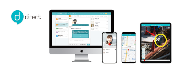 お客さまの声とともに進化を続ける日本で開発しているビジネスチャット「direct」は、文字のやりとりだけでなく、現場で撮った写真や図面ファイルを使った情報共有、緊急時の連絡手段として、現場で働くフィールドワーカーの方々に広くご活用いただいています。「direct」は、現場と社内をつなぐDX化ソリューションとして幅広い業種の方々にご利用いただいています。