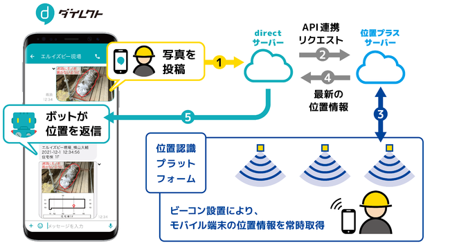 株式会社L is B(エルイズビー 本社:東京都千代田区、代表取締役社長/CEO:横井 太輔、以下L is B)と株式会社竹中工務店(本社:大阪市中央区、代表取締役社長:佐々木 正人、以下竹中工務店)は、竹中工務店が開発した「位置プラス(R)」シリーズの「位置認識プラットフォーム」で取得した建設現場の位置情報を、L is Bが開発・提供するビジネスチャット「direct(ダイレクト)」に通知するサービスを共同開発したことをお知らせいたします。