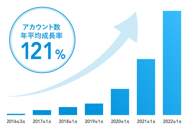 当社は「働くひとの健康を世界中に創る」をパーパスとし、2016年に健康管理システム「Carely」(ケアリィ)を開発・運営しています。2022年1月時点における累計契約企業数は500社を超え、アカウント数はサービス開始から年平均成長率121%で伸び続けております。