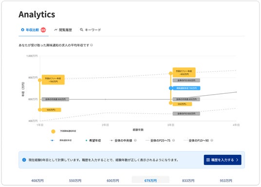 ースキルや経験に基づき、企業が提示する可能性のある年収レンジを算出ー