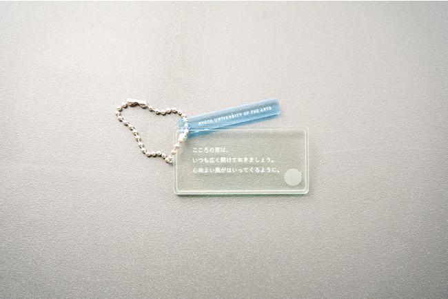 キーホルダーという誰もが持ち歩きやすい形にすることで、卒業した後も身につけて大学生活を思い出したり、これを見て元気や勇気が出たりするようなきっかけになれば、という想いを込めています。
