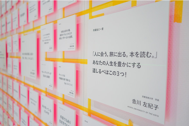 京都芸術大学の学生は学科に所属していない先生方にもお世話になっています。学科を横断する科目において、そういった先生方に影響を受ける学生が多く存在しています。そういった先生方にもメッセージをいただき、「愛ことばキーホルダー」のお言葉とあわせてフォトスポットを創りました。