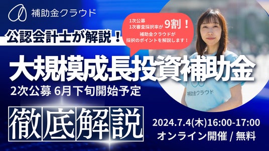 本セミナーでは、2024年度に注目の「大規模成長投資補助金」(2次公募:6月下旬開始予定)を、公認会計士が解説いたします。