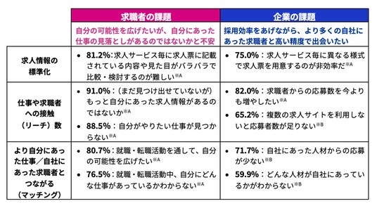 <「企業の採用活動および求職者の仕事探しにおける課題調査」で明らかになった課題>
