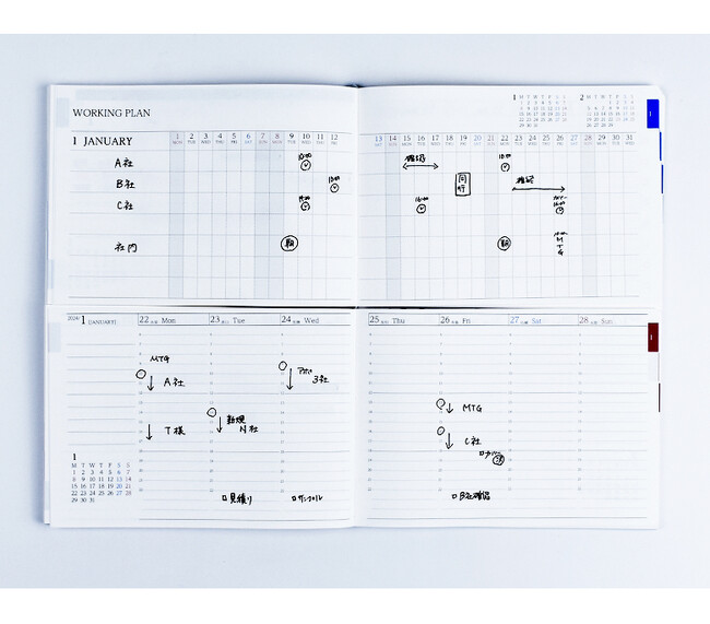 月間カレンダー・1日1ページメモ・WORKINGPLAN(ガントチャート)・年間カレンダー
