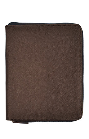 ファスナーで手帳本体を囲む形状の手帳カバーです。