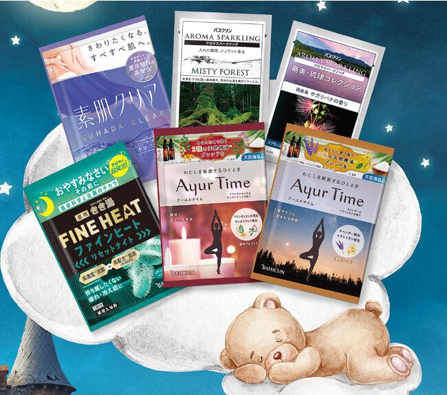 株式会社バスクリン(本社:東京都千代田区 社長:三枚堂正悟)は、人気の入浴剤シリーズの中から、夜のリラックスタイムにぴったりな6種類の入浴剤・入浴料をセレクトしたアソートセット「Night Assort(ナイトアソート)」を8月22日(火曜日)に新発売します。気持ちがゆったりリラックスできるハーブや樹木、花の香りを4つのブランドからセレクトしました。当社の調香師がこだわって調香した、6種類の香りでおやすみ前のバスタイムをお楽しみください。