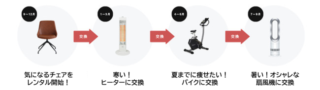必要なときに必要なものをレンタル、不要になったら交換または返却する、循環型の「所有しない利用」を促進し、SDGsの目標12「つくる責任 つかう責任」の達成に向け、持続可能な社会の実現と環境負荷軽減に取り組むとともに、変化に応じた“最適空間”を提供してQOL(生活の質)の向上と、自由で豊かなあたらしい暮らしの実現を目指し、サービスを進化し続けております。