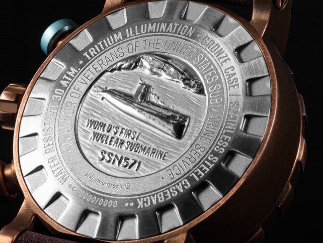 裏蓋にはモデルになった原子力潜水艦SSN-571が3Dでデザインされています。
