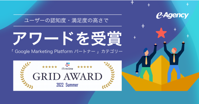 “おもてなしを科学する”株式会社イー・エージェンシー(東京都千代田区、代表取締役:甲斐真樹、以下イー・エージェンシー)は、2022年7月13日、アイティクラウド株式会社(東京都港区:代表取締役社長 黒野源太)運営のIT製品レビュープラットフォーム「ITreview(アイティレビュー)」の「Google Marketing Platformパートナー」カテゴリーにおいて、満足度・認知度ともに優れていると評価され、「ITreview Grid Award 2022 Summer」の「Leader」を受賞しました。