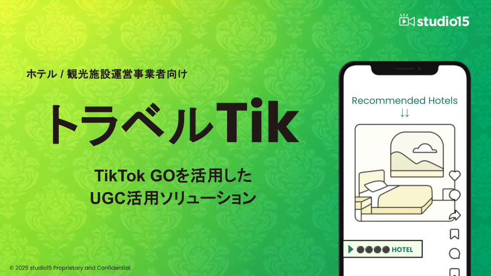 TikTokを中心としたショートムービー(短尺動画)領域で広告代理店事業・プロダクション事業を展開するstudio15株式会社(スタジオフィフティーン、本社:東京都渋谷区、代表取締役:岩佐 琢磨、以下 studio15)は、宿泊施設の集客支援を行う無料施策『トラベルTik』の概要をまとめたホワイトペーパーを2025年12月4日(木)に公開しました。