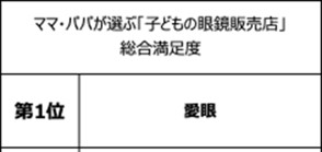 愛眼は2021年12月~2022年1月に実施されたママ・パパが選ぶ「子どもの眼鏡販売店」のランキングにて、総合満足度第1位を獲得いたしました。