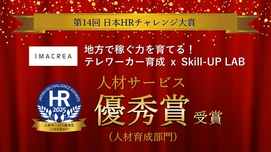 株式会社イマクリエ(本社:東京都港区、代表取締役:鈴木信吾、以下、当社)は、地方人材の育成と活性化に貢献する「テレワーカー育成プログラム」および継続的なスキルアップを支援する「Skill-UP LAB」の取り組みが高く評価され、「第14回日本HRチャレンジ大賞」において「人材サービス優秀賞(人材育成部門)」を受賞しました。