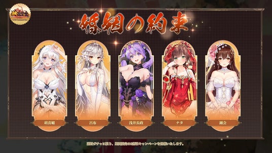 開催期間中、アウグストゥス、上泉信綱、ニヴィアン、源博雅、李広がウェディングドレスと共に登場、一緒に戦いましょう!