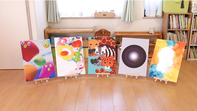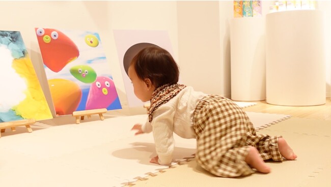 最終選考は、作品を赤ちゃんに選んでもらうという方式で行いました。初めて目にするグラフィックに驚きながらも、鮮やかな作品に向かって進む姿や、お気に入りの作品から動かない子など、赤ちゃんたちの真剣な審査風景が見られました。