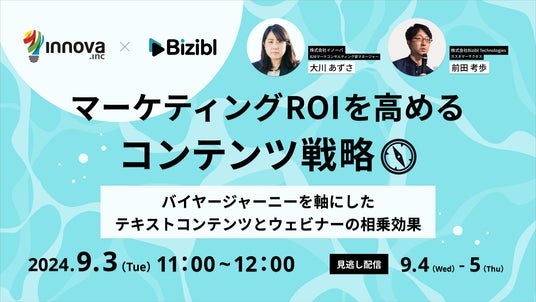 BtoBのコンテンツマーケティングで成果を出し、ROI株式会社Bizibl Technologies(本社:東京都千代田区、代表取締役:花谷燿平、以下当社)は、『マーケティングROIを高めるコンテンツ戦略~バイヤージャーニーを軸にしたテキストコンテンツとウェビナーの相乗効果~』を、2024年9月3日(火)LIVE配信、4日(水)-5日(木) 録画配信で実施することをお知らせいたします。