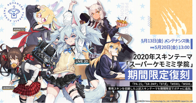 株式会社サンボーンジャパンは、スマホ向け戦略型シミュレーションゲーム『ドールズフロントライン(以下、「ドルフロ」)』において、5月14日(土)0時より追加される人形達が様々な獣人に変身した新スキンテーマ「ビーストタウン・ラプソディ」を先行して公開いたします。