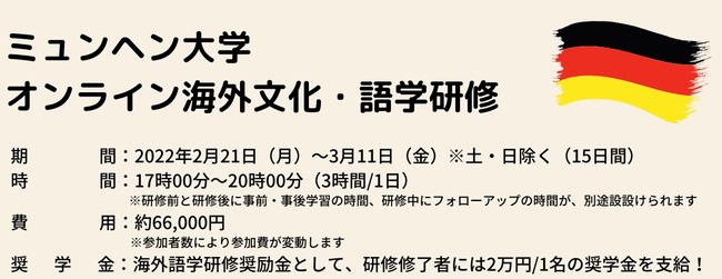 大正大学(学長:高橋秀裕、所在地:東京都豊島区)は、2022年2、3月に本学史上2回目の『オンライン海外文化・語学研修』を実施中。コロナ禍で海外への訪問が難しい中でも、国際交流機会の提供を継続するため、協定校の協力のもとオンラインにて海外研修プログラムを実施しています。本研修は、単位認定対象であることはもちろん、参加学生全員に奨学金2万円支給、協定校(ミュンヘン大学・東西大学校)とサザンクロス大学とともに、企画・実施されるオンラインプログラムです。外国語コミュニケーション能力の向上、現地学生との交流を通した異文化や現地での生活の様子の理解向上など、異文化学習も兼ねている点が特徴です。