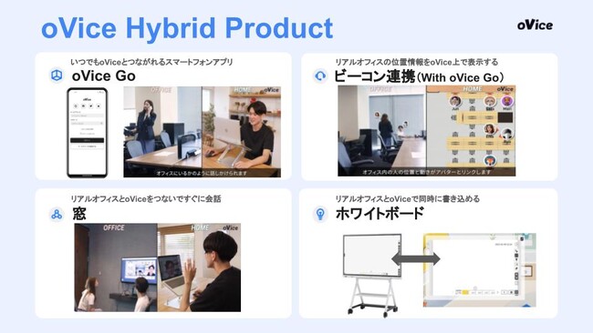 「oVice Hybrid Office _ Shinagawa」では、主に4つのハイブリッドワークに関する技術を体験できます。