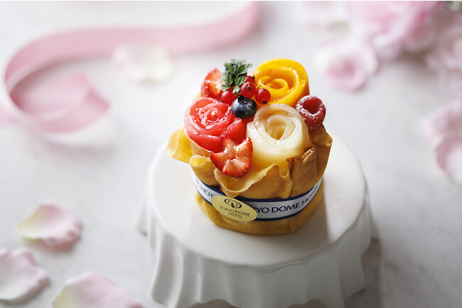 開業23周年を記念したスペシャルケーキ「bouquet de fleurs(ブーケ ド フルール)」は花束に見立てた可愛らしい逸品。ベリー系の酸味とホワイトチョコレートの程よい甘さのハーモニーを楽しめるムースケーキに、苺やマンゴー、白桃などを飾り華やかに仕上げました。クレープ生地で美味しさを包み込んだ6月限定のスペシャルケーキです。