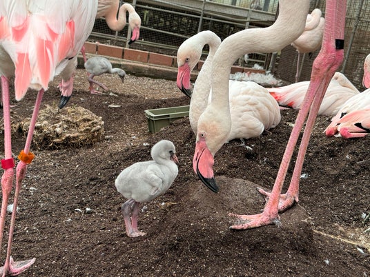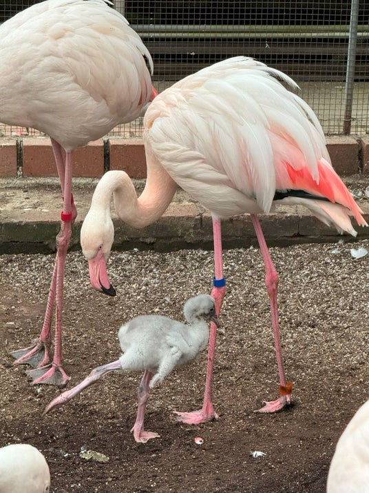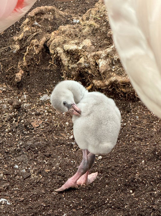 オオフラミンゴのお母さんはフラミンゴプールで子育て奮闘中
