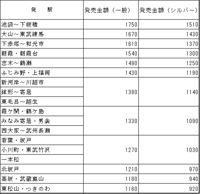 東上線発駅~森林公園駅 往復(割引)