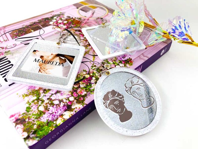 △作り方簡単♪手軽に1個からオリジナルで作れるスライドミラーキーホルダー