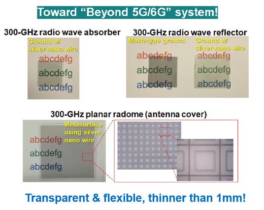展示予定の透明な電波吸収体、反射体およびレドーム