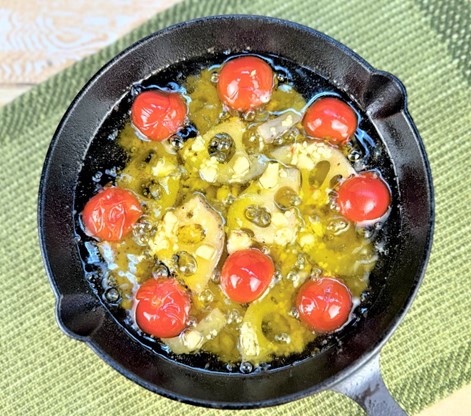 桃屋の「きざみにんにく」と日清オイリオグループの「BOSCOエキストラバージンオリーブオイル」を組み合わせたアヒージョは、この2品だけで調理ができることから、簡単に県産食材を引き立てるメニューです。