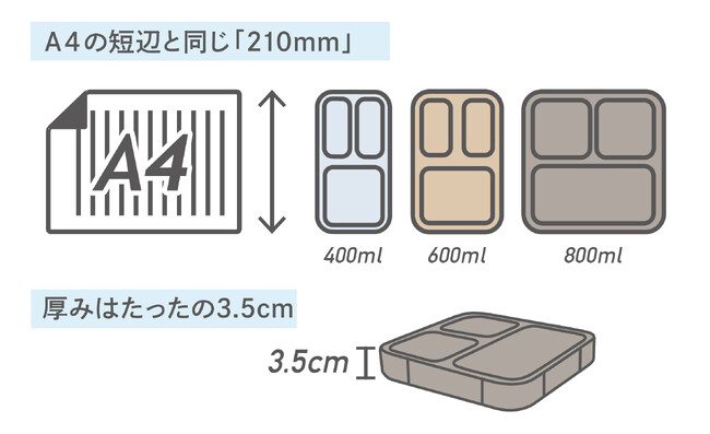 また、1辺がA4用紙の短辺と同じ「210mm」なので、書類などと一緒に運びやすいサイズもポイント。