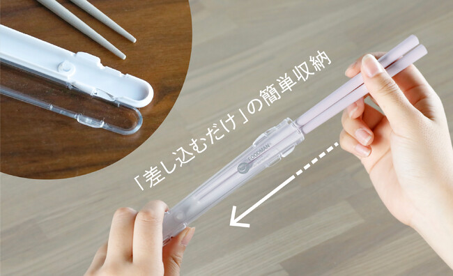 「薄型弁当箱フードマン」と同じく箸もケースもまとめて食器洗浄機で洗えるので、お手入れ簡単です。