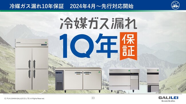 フクシマガリレイ株式会社(本社:大阪市西淀川区、代表取締役社長 福島 豪)は、ノンフロン冷媒を採用した業務用冷凍冷蔵庫タテ型・ヨコ型、製氷機に関して、冷媒ガス漏洩における冷却不良・修理を10年間保証する《冷媒ガス漏れ10年保証》に関する記者発表会を2月13日(火)10時より開催いたしました。