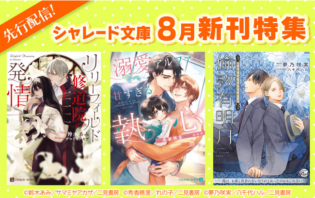 シャレード文庫(二見書房)の新刊を先行配信いたします。期間中はサイト内にて著者関連作を集めた特設ページを開設中です。新刊から、気になる著者の過去作品まで、ぜひ一挙にご覧ください。