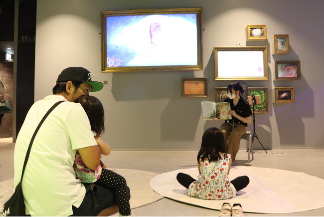 また、同日に開催した絵本読み聞かせではレオ・レオニの名作絵本『スイミー』をスタッフがユーモラスに朗読し、子どもたちは、真剣に聞き入って興味を持っている様子が伺えました。今後も読み聞かせは8月31日までの週末(土曜、日曜)に開催いたしますので、ぜひ親子でご参加ください。