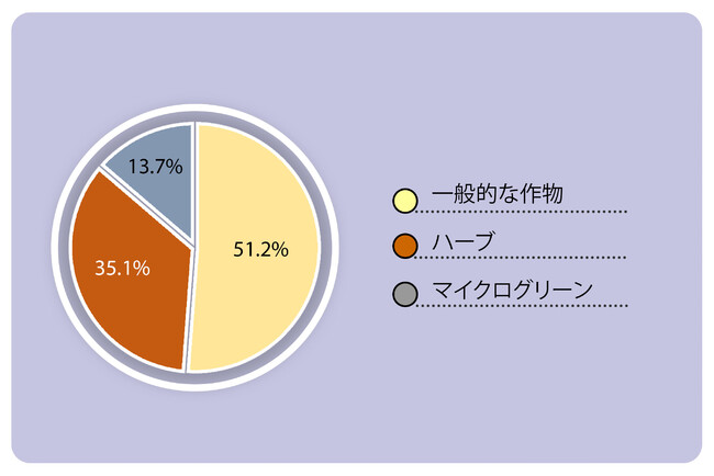 質問:屋内農業市場でより多くの市場シェアを持っている作物の種類はどれですか?