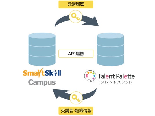今回、多機能型LMS「SmartSkill Campus」とタレントマネジメントシステム「タレントパレット」を連携させることで、社員の学習履歴を人財データベースと統合し、一元的に活用できるようになります。