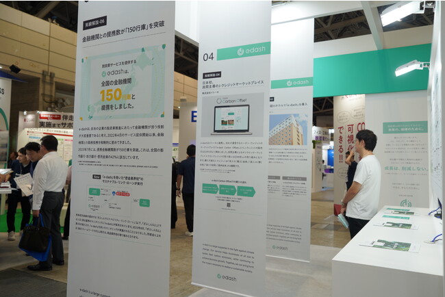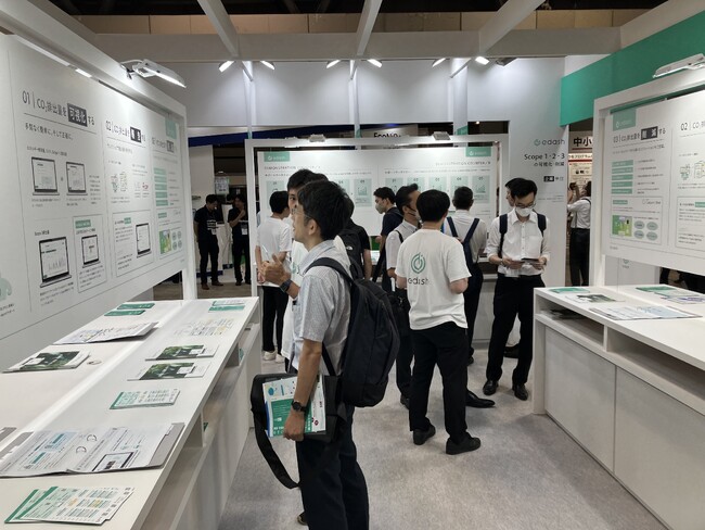 企業や自治体の「e-dash」活用事例を紹介するエリアでは、全国300超のホテルに「e-dash」をご導入いただいた東横イン様の事例や、宮崎県からの受託で当社が県内50社のCO2排出量の可視化・削減支援を開始した取り組みなどが、注目を集めました。
