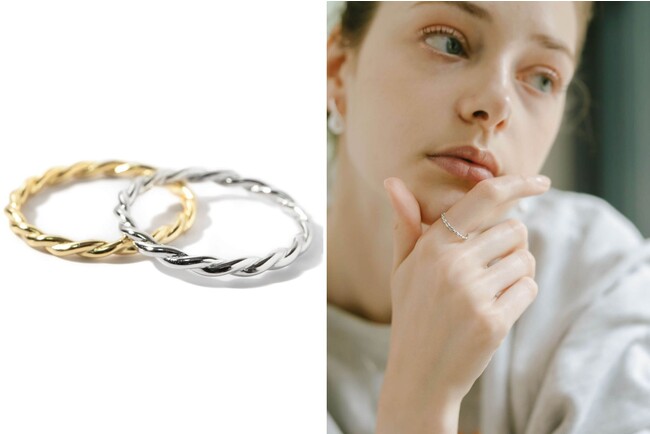 目を引くツイストデザインが個性を放つシルバーリングは、シンプルなデザインだから重ね付けもしやすい指輪です。