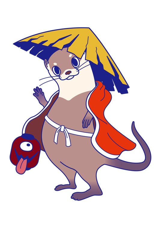 カワウソの妖怪。人の声を真似たり、化ける話が数多く残っている小豆島特有の妖怪。伝承をもとに妖怪画家の柳生忠平が様々な作品に描いている。