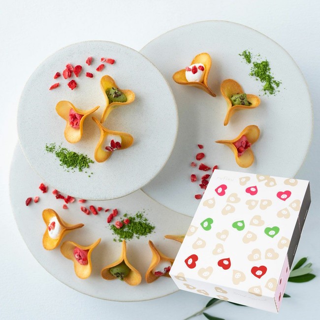 KINEELの看板商品である、お花の形のラングドシャにふんわりクリームを入れた「ルフル」の3種をセットにしました。