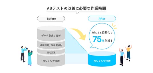 これまで手動で対応していた様々な対応をAIが自動化することで、工数を削減しながら、スピーディかつ効果的な施策を実施することで、ABテストの本来の目的である「効果的な配信の最適化」を迅速に実現でき、時間とリソースを最大限に活用しながら成果を最大化することが可能になります。