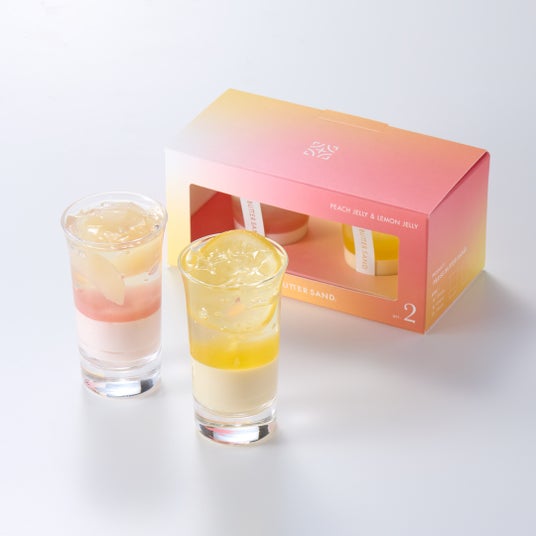 定番のバターサンド、通常時は中四国の店舗でのみ販売している〈檸檬〉、今回の新商品〈桃〉に加え、新シリーズ「3層のフルーツジュレ〈桃・檸檬〉」を詰め合わせた、お中元にもおすすめの詰め合わせです。