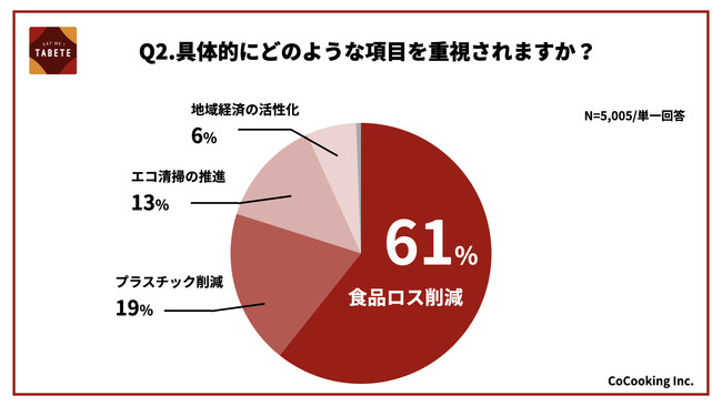 2)重視する取り組みは「食品ロス削減」が61%と過半数を占める