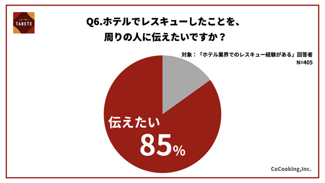 6) ホテルでTABETEを通してレスキューしたユーザーの内、85%が「周りの人に伝えたい」と回答
