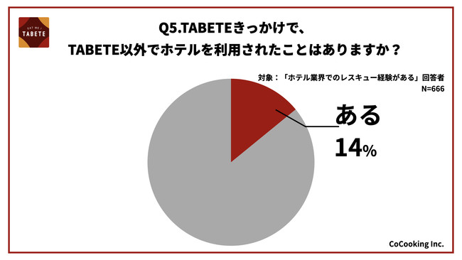 5) TABETEがきっかけでホテルを通常利用した割合は14%