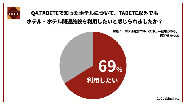 4) TABETEきっかけで67%が「ホテルを通常利用したい」と回答