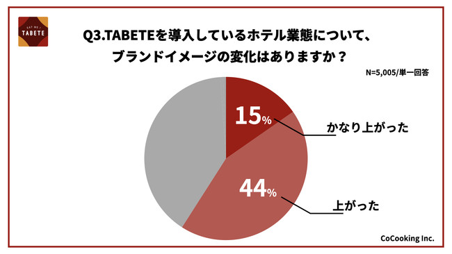 3)ホテルがTABETEを導入後、ブランドイメージは59%が「上がった」と回答