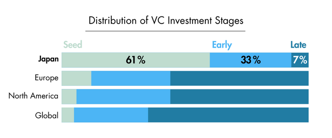 日本におけるベンチャーキャピタル投資金額は増加傾向が続いているものの、欧州や北米と比べるとグロースフェーズ(レイター期)における投資金額が極端に少ない状況となっています。シード期において資金調達が順調に進んだスタートアップが、中期から後期のフェーズに進むと十分な資金を調達できないという課題に直面するケースも多く、グロースフェーズにおける資金確保の難しさは、今後日本からさらに多くのユニコーン企業を輩出するうえでの大きな課題であると考えています。