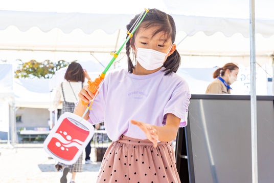「SDGs アドベンチャー」は、SDGs17の目標に即したあそび体験を通じて、SDGsを学ぶきっかけや理解に繋げる親子向け体験型ワークショップです。疑似魚釣り体験や分別ゲームを通じて「海の豊かさ」「分別」について学びます。